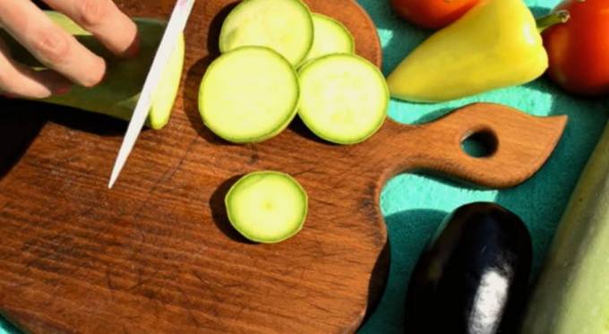 Durante la stagione delle grigliate alla griglia si possono cuocere non solo carne, funghi o pesce, ma anche deliziose verdure aromatiche. Puoi scegliere le verdure a tua discrezione e desiderio. Suggerisco di grigliare melanzane e zucchine.