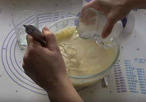 E ora è il momento dell'ingrediente più semplice ma più importante. Aggiungi la soda all'acqua bollente e mescola per dissolverla. Versatelo direttamente nell'impasto e mescolate velocemente. Questo renderà l'impasto più liscio e uniforme. Versare l'olio e mescolare fino a quando non sarà ben amalgamato.