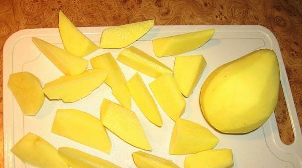 Offriamo una ricetta semplice per patate al cartoccio al cartoccio. Sbucciare i tuberi, tagliarli a fette. Condire con sale e olio vegetale e mettere in un foglio. Cuociamo in forno per mezz'ora. Per ottenere una crosticina dorata sulle fette già pronte, accendete il grill per una decina di minuti. Tutto quanto! Gli spicchi rosati morbidi sono pronti - le patate possono essere servite.