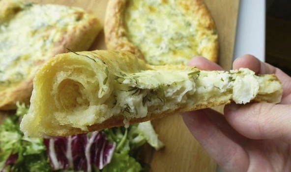 Una versione semplice di khachapuri con un sacco di ricotta ed erbe aromatiche. Risultano molto succosi e un po' friabili, possono essere serviti con un'insalata di verdure fresche.