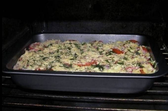 In una ciotola separata, unire le uova e la panna acida e condire con sale a piacere. Ungete la forma con il burro, mettete sul fondo metà delle zucchine, poi la carne macinata con le cipolle e ancora le zucchine. Distribuire sopra i pomodori, versare il composto di uova sul bianco e cospargere di formaggio grattugiato.