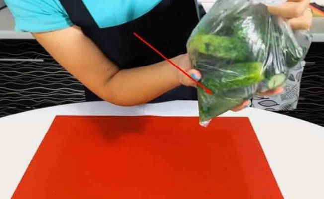 Cetrioli leggermente salati in una confezione per 2 ore