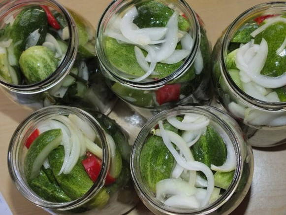 Non proprio la versione classica dei cetrioli sottaceto, che è dominata da una nota dolce. I cetrioli sono croccanti e aromatici. L'equilibrio del gusto tra zucchero, sale e spezie non permette di considerare dolce la preparazione, ma i sottaceti non possono più essere chiamati sottaceti. Se vuoi sorprendere i tuoi ospiti, vale la pena arrotolare alcuni barattoli di questo snack.