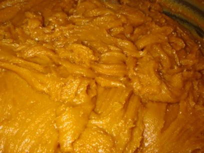 Metti il miele in una casseruola profonda, portalo a ebollizione a fuoco medio, mescolando continuamente. Quindi aggiungere la soda, lo zucchero, il sale e l'acqua al miele. Cuocere la massa a fuoco medio fino a quando lo zucchero si dissolve, in modo che la massa acquisisca un colore arancione scuro.