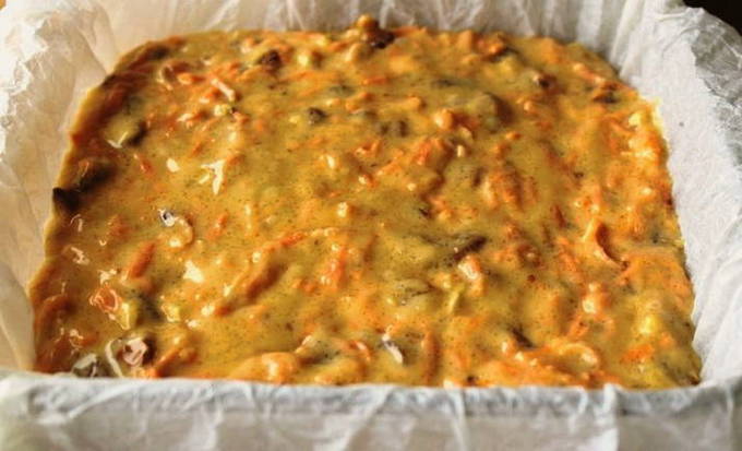 Ungere la teglia con una piccola quantità di olio vegetale inodore. In alternativa, puoi rivestire la teglia con una pergamena unta d'olio per facilitare la rimozione della torta finita. Se lo stampo è in silicone, non è necessario lubrificarlo. Preriscaldare il forno a una temperatura di 180 gradi. Distribuiamo l'impasto di carote nella forma preparata. Mettiamo la forma con l'impasto in un forno già caldo al livello centrale e inforniamo per quaranta-quarantacinque minuti. Il prodotto dovrà dorarsi bene e aumentare leggermente di volume. A fine cottura controlliamo la torta con uno stuzzicadenti, infilandolo al centro: se lo stecco esce senza residui di pasta bagnata, la cottura può essere completata.