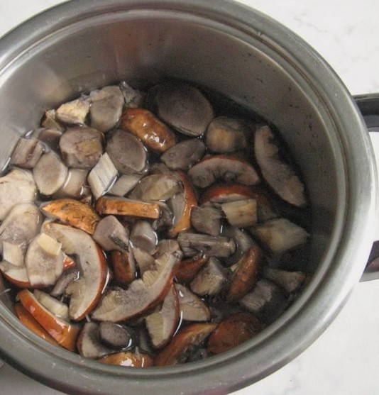Puliamo i funghi di pioppo dalla sporcizia, eliminiamo eventuali difetti. Sciacquare accuratamente i funghi sotto l'acqua corrente per eliminare la contaminazione residua. Tagliare i funghi lavati in piccoli pezzi di forma arbitraria e metterli in una casseruola. Riempire i porcini con acqua e metterli sul fuoco. Dal momento dell'ebollizione, cuociamo i funghi per trenta minuti. Rimuovere periodicamente la schiuma con una schiumarola. Trascorso il tempo di cottura, mettete i funghi in uno scolapasta e lasciate scolare l'acqua.
