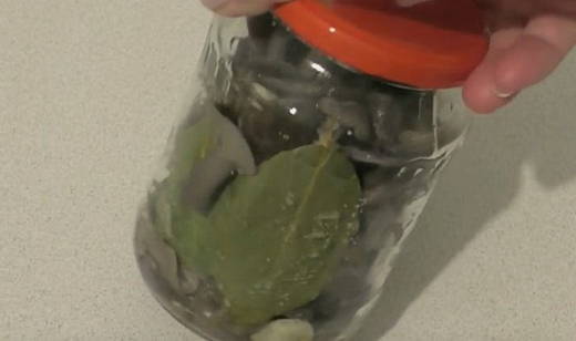 Delicatamente, per non scottarti, avvita i barattoli caldi con coperchi sterili. Capovolgi i vasetti caldi con le file di zampe di lillà sott'aceto, avvolgili con un asciugamano di spugna e lasciali in questa posizione finché non si raffreddano completamente. Quindi sposta i barattoli completamente raffreddati con le file in salamoia in un luogo buio e fresco o in frigorifero per la conservazione.