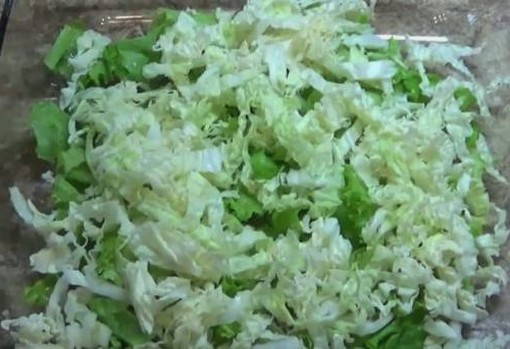 Una delle opzioni per fare Cesare con cavolo cinese, uova di quaglia e salsa di ostriche. Stendetela a strati e conditela con la salsa sopra, mescolatela o gustate a turno i singoli ingredienti - ognuno deciderà da sé nel proprio piatto.