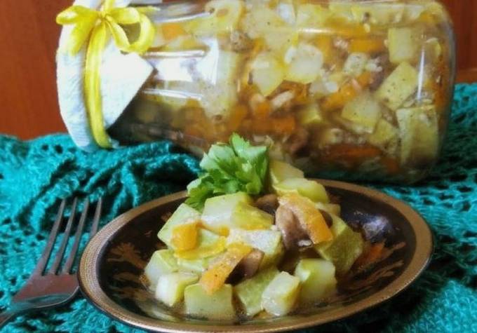La combinazione di zucchine e funghi si trova raramente nelle preparazioni per l'inverno. Tuttavia, ciò non significa che il duetto di zucchine e funghi prataioli non sia degno di attenzione. L'insalata ottenuta da questi ingredienti è molto gustosa e aromatica. Un altro plus di questa insalata è la semplicità e velocità di preparazione.