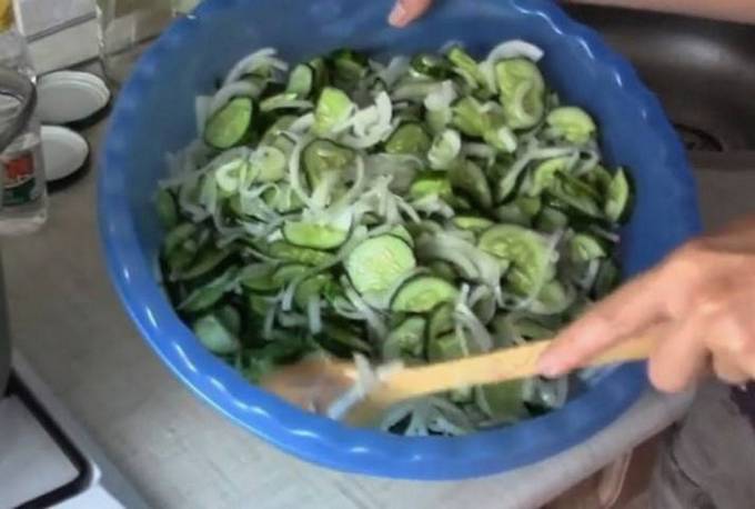 Quando sei così soddisfatto della raccolta dei cetrioli che non hai il tempo di arrotolarli, molto spesso i frutti maturano troppo. Questa insalata è solo per un'occasione del genere. Usa verdure di qualsiasi dimensione e varietà per la sua preparazione, non rovinerà il gusto. E questa insalata contiene anche molte cipolle - 1/6 del volume totale, integra perfettamente il gusto dei cetrioli.