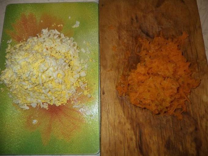 Insalata con pollo, funghi, prugne e uova