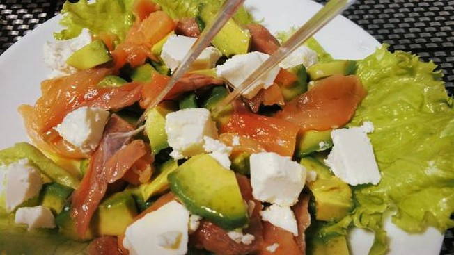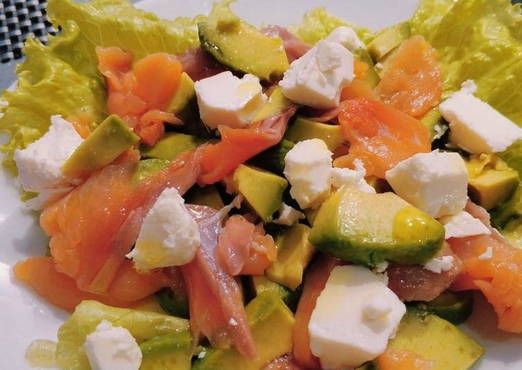 È incredibile quanto un sapore così ricco possa fornire un'insalata così semplice e povera di ingredienti. Il delicato salmone e l'avocado che si sciolgono in bocca sono fatti l'uno per l'altro. Verdure e feta completano questo perfetto equilibrio di sapori. L'insalata sarà apprezzata anche da coloro che aderiscono a una corretta alimentazione, perché tutti gli ingredienti sono molto sani.