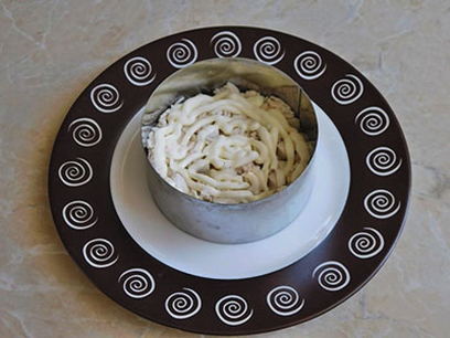 Insalata appetitosa e deliziosa, la cui ricetta è collaudata nel tempo. Molto spesso viene preparato a strati e servito sulla tavola festiva.