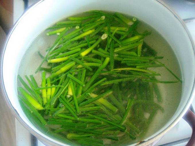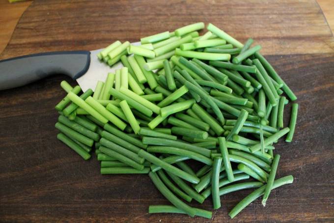 Deliziose frecce all'aglio con una gustosa salsa orientale. Se ti piacciono gli accostamenti di sapori insoliti, allora questo piatto fa sicuramente per te! È molto semplice prepararlo, l'importante è non dimenticare le piccole cose. Dopotutto, sono il pezzo forte del piatto!