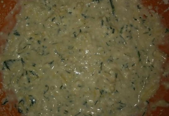 Mettere la ricotta in una ciotola e lavorarla con una forchetta. Laviamo le verdure, le asciugiamo e tritiamo finemente con un coltello. Versare le verdure tritate sulla ricotta e mescolare. Salare a piacere e aggiungere pepe nero. Non dimenticate che anche il formaggio che andrà ad aggiungere all'impasto è salato.