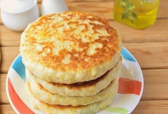 Impastiamo la pasta, prima aiutandoci con un cucchiaio, e poi andiamo a lavorare con le mani. La massa risulta essere spessa, ma appiccicosa, non fredda. L'impasto deve mantenere la sua forma. Dividiamo l'intero volume dell'impasto in quattro parti della stessa dimensione. Tiriamo fuori un panino da ogni parte. Cospargete di farina il piano di lavoro in modo che l'impasto non si attacchi. Arrotolare ogni panino con un mattarello in una torta con uno spessore di circa tre o quattro millimetri. Al centro di ogni piadina mettete il formaggio grattugiato differito. Sollevare i bordi liberi della torta e pizzicare sopra il ripieno. Premiamo leggermente la "borsa" risultante con il palmo, quindi la stendiamo con un mattarello a uno spessore da quattro a cinque millimetri. Quindi, riempiamo tutte le torte.