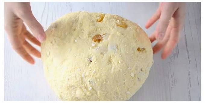 Dividere l'impasto con i canditi in 6 pezzi identici e metterli in appositi stampini per la cottura di torte. Se avete degli stampini di metallo, copriteli con carta da forno e spalmateli con olio vegetale. Lasciare l'impasto negli stampi per mezz'ora per la lievitazione. Durante questo periodo, dovrebbe ancora venire.
