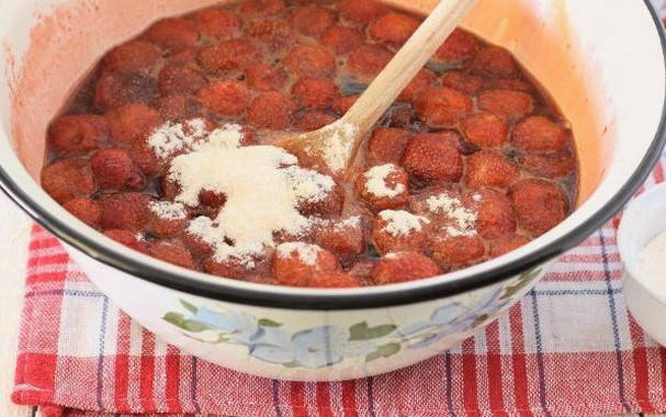 Se vuoi fare una marmellata di fragole insolita, usa questa ricetta interessante. La marmellata di fragole con pectina risulta essere una consistenza densa e mantiene bene la sua forma. La marmellata di fragole aromatica può essere utilizzata come strato di dessert.