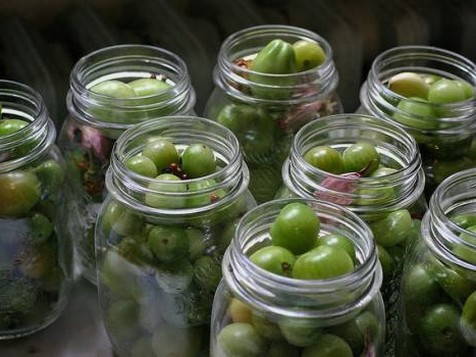 Oggi saremo impegnati nella conservazione dei pomodorini verdi con l'aggiunta di peperoncino, cannella e gelatina. La cannella conferisce alla marinata una nota speziata e la gelatina rende la marinata densa, il che consente di mantenere la succosità e la struttura soda dei pomodori.