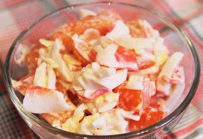 We współczesnym świecie większość ludzi to zapracowane osoby, które nie chcą poświęcać dużo swojego cennego czasu na gotowanie. Albo jedzą w kawiarni, albo w pośpiechu gotują coś w domu. Proponuję zrobić szybką sałatkę z pomidorów krabowych, która gotuje się w kilka minut. Danie można przygotować zarówno jako sałatkę, jak i jako nadzienie do kanapek czy chleba pita. Jedyną różnicą będzie metoda cięcia. Na sałatkę pokrój jedzenie na większe kawałki, a na przystawkę na mniejsze kawałki.
