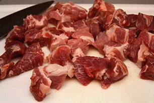 Dobrze umyj dynię i obierz obieraczką do warzyw. Pokrój obraną cukinię w średniej wielkości kostkę. Jeśli używasz młodej cukinii, nie musisz ich obierać. Wyślij cukinię na patelnię. Umyj i posiekaj ostrą paprykę, dodaj do mięsa, przykryj sosem sojowym i gotuj pod przykryciem przez około 10-12 minut.